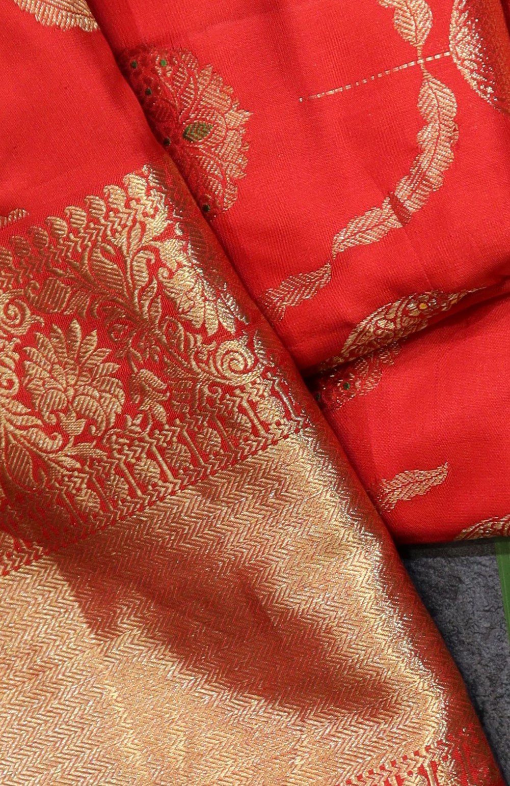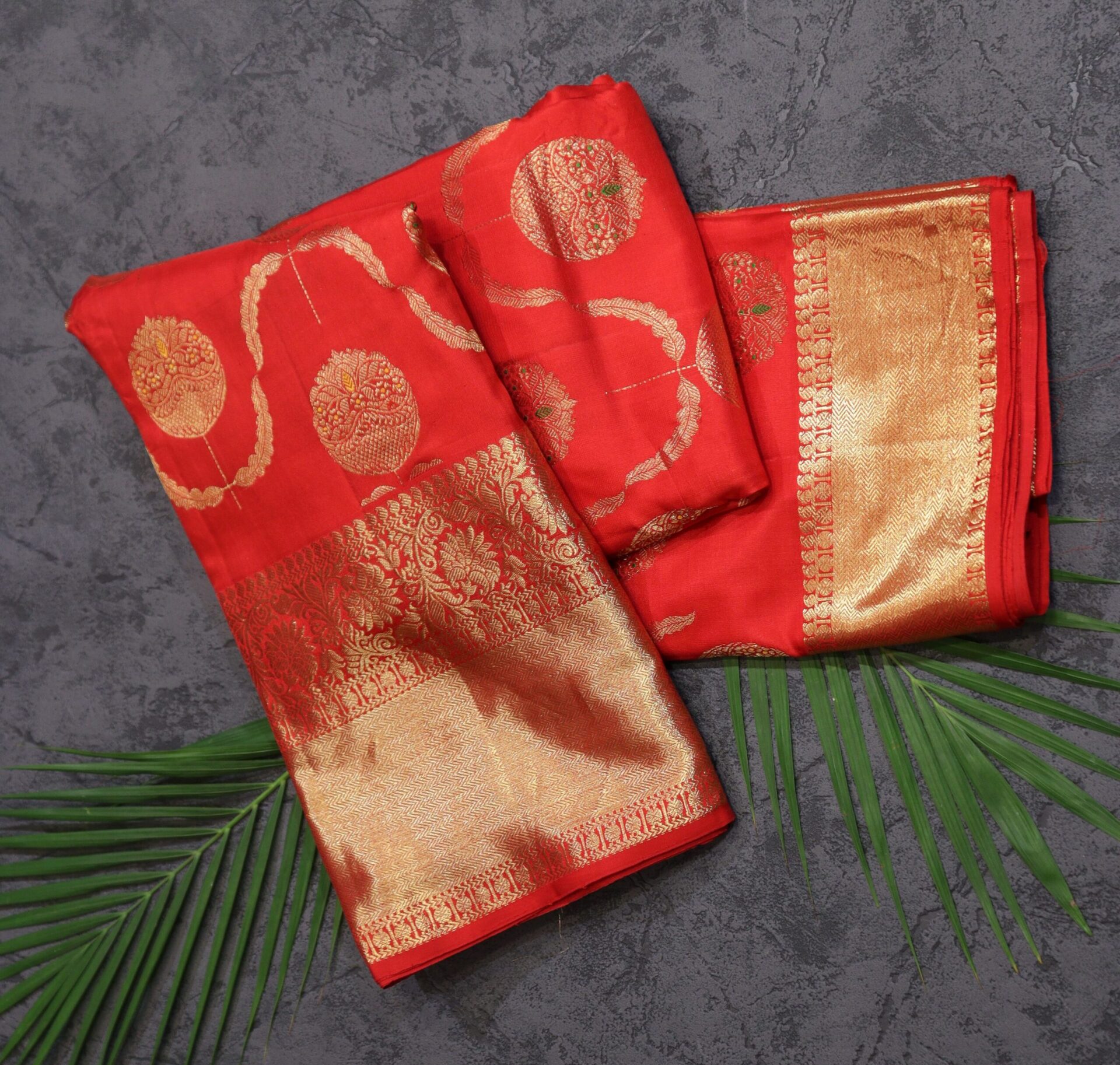 Celebrate the beauty of Indian craftsmanship and tradition with the Hot Red Color Kanjivaram Saree, a true symbol of elegance and grace.