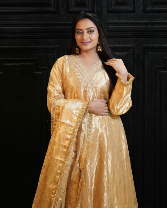 YELLOW GOLDEN TISSUE ANARKALI SET